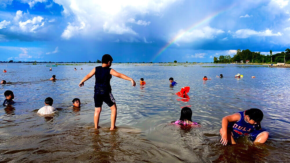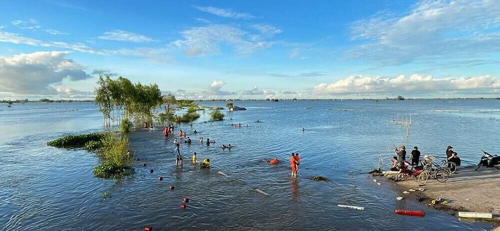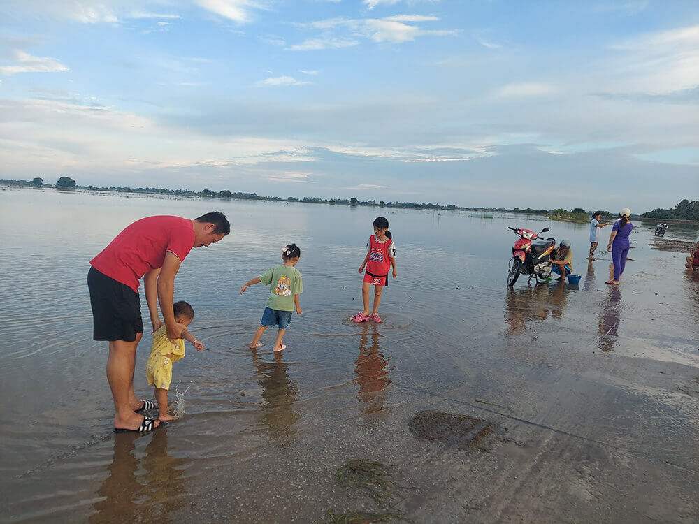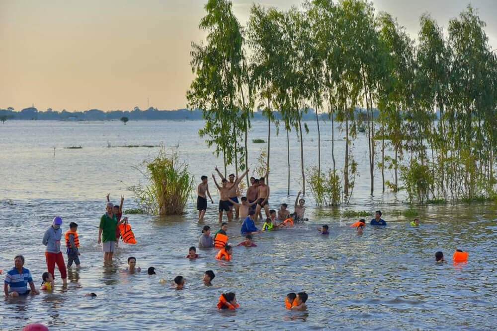 빈록(Vinh Loc) 들판에 범람된 수위는 약 1~1.3m 깊이여서 많은 사람들이 서로를 초대하여 들판에서 목욕을 했습니다. 안전을 보장하기 위해 지방 당국은 사람들에게 해안에서 멀리 가지 말라고 정기적으로 경고합니다. 부모는 어린이를 감독하고 익사 방지를 위해 구명조끼를 착용해야 합니다.