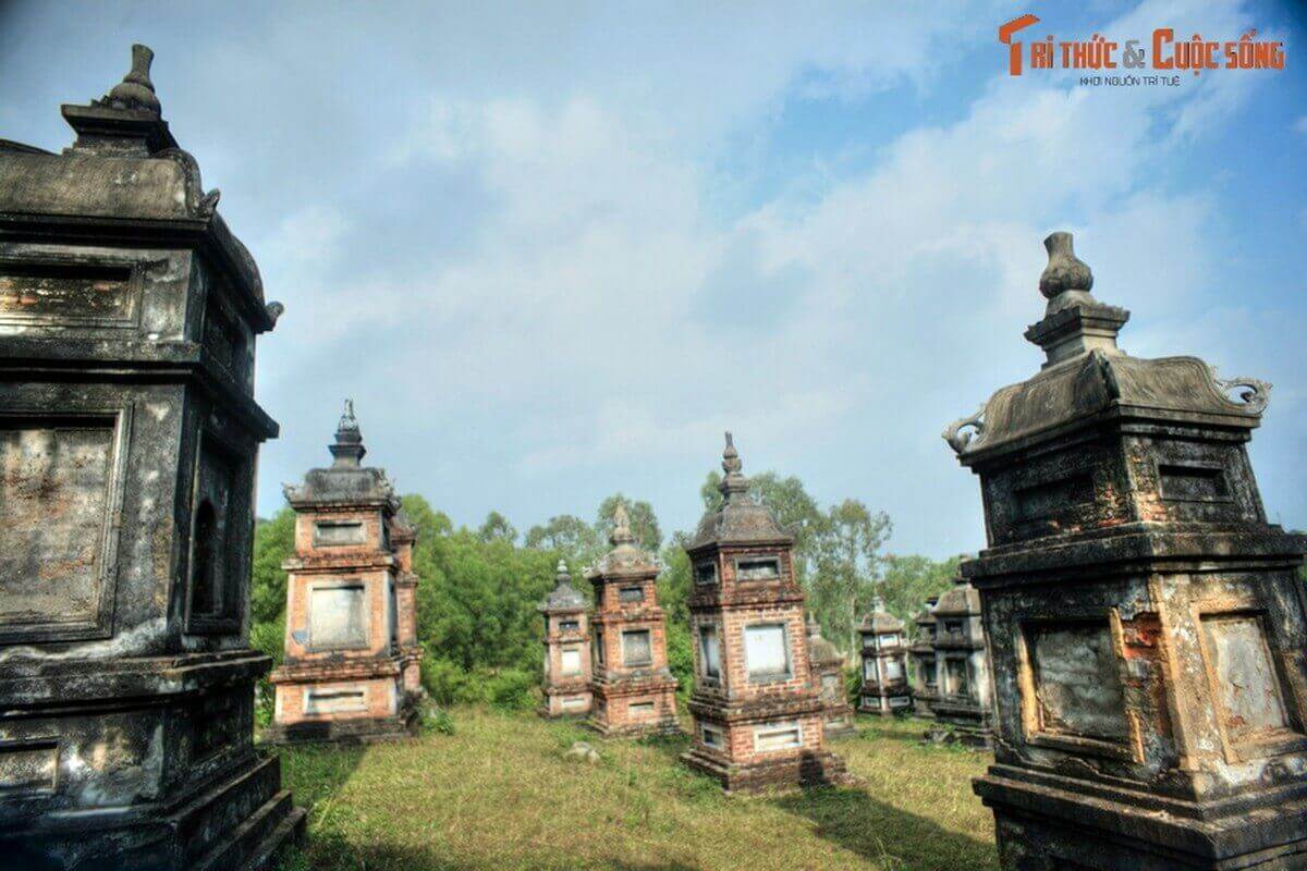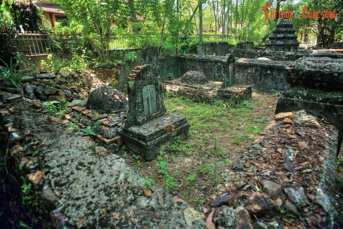 승려들의 묘탑 외에도 Tu Hieu 탑은 Nguyen 왕조의 내시들을 기리는 매우 특별한 고대 무덤 지역으로도 유명합니다. 이 무덤은 면적이 거의 1,000㎡에 달하는 직사각형 부지에 위치하고 있으며,25개의 무덤이 환관의 위치에 따라 3열로 나누어 배열되어 있습니다.