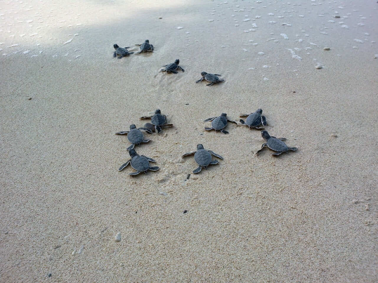 꼰다오 바다에는 5종의 거북이가 살고 있는데,둥지를 틀고 알을 낳기 위해 해변에 자주 찾아오는 거북이는 녹색거북(녹색거북)과 대모거북 2종뿐이다. 현재 바다거북의 모든 종은 멸종 위기에 처해 있으며 베트남과 세계의 레드북에 등재되어 있습니다.
