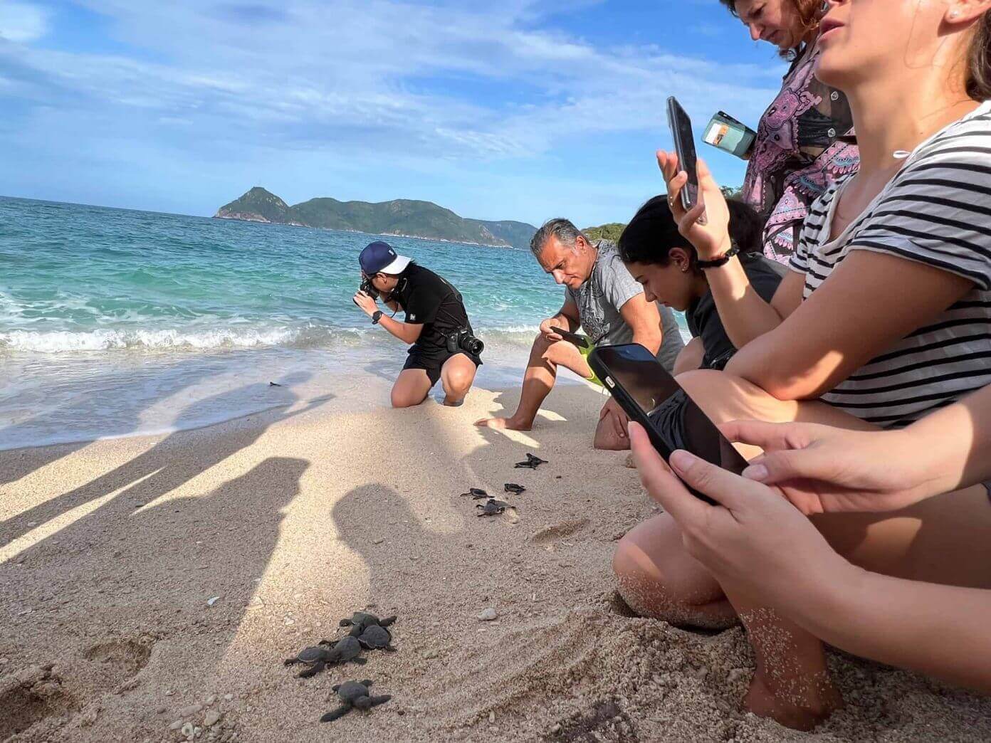 바리아붕타우의 꼰다오 국립공원에서 새끼 거북이가 바다로 돌아가는 모습을 지켜보는 체험