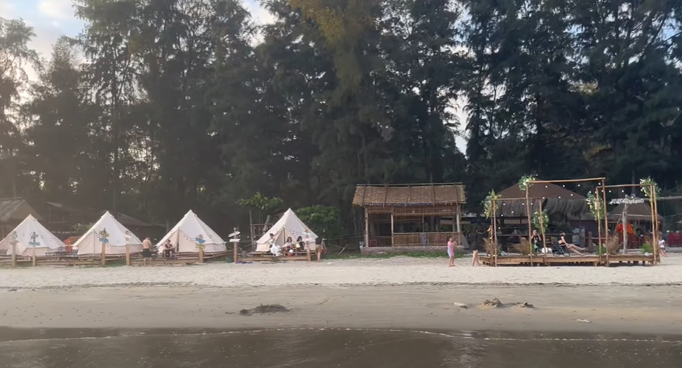 이 해변은 높이 110m로 베트남에서 가장 높은 등대인 응옥붕(Ngoc Vung) 등대가 있는 곳이기도 하다. 이 등대에 서서 방문객들은 응옥붕 섬과 주변 섬의 전체 자연 경관을 완전히 볼 수 있습니다. 바다 위로 지는 해를 감상하기에도 좋은 곳이다. 방문객들은 등대에 올라가 해양 교통에 사용되는 광학 및 전자 장비를 볼 수 있습니다.