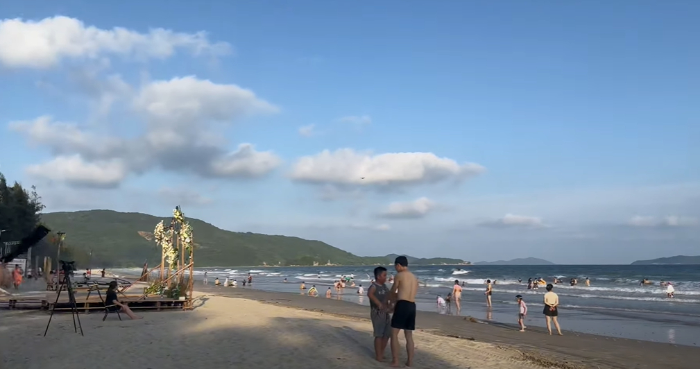 해변 끝자락에는 자연암반 급류도 있는데,마치 자연의 요동으로부터 해안을 보호하듯이 기암괴석이 많이 솟아 있다. 이곳에 서면 방문객들은 이 초승달 모양의 해변의 아름다움을 충분히 감상할 수 있고,멀리 반 칸 섬(Van Canh Island)의 넛닷 섬(Nut Dat Island)까지 볼 수 있습니다. 조용한 공간에서 바람의 속삭임과 바다의 소리가 주변 풍경을 그 어느 때보다 생생하게 만들어주며,방문객들은 바람을 따라가며 영혼의 휴식을 즐길 수 있습니다. 섬.