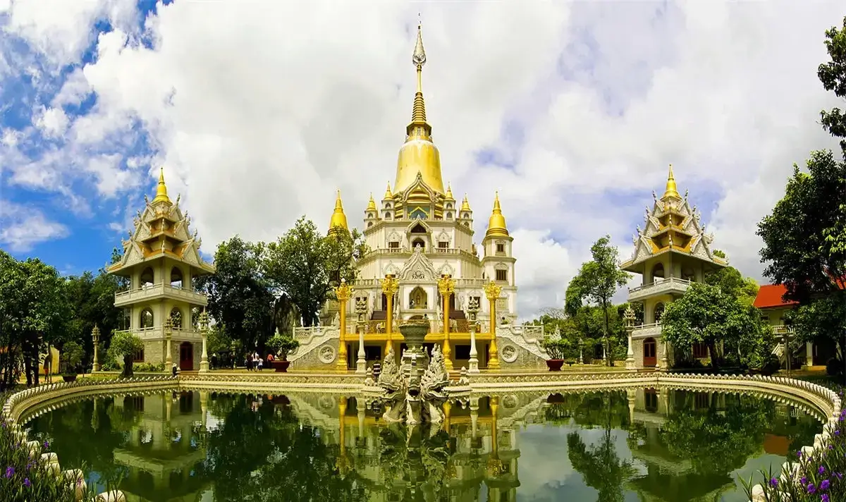 사찰의 전체 면적은 약 11헥타르에 달하며,많은 푸른 나무가 사찰을 덮고 있어 내부 공간이 신선하고 순수하게 보이도록 도와줍니다. 탑의 디자인은 또한 베트남 응우옌 경 통치 시대부터 태국,인도,미얀마에 이르기까지 다양한 문화를 완벽하게 혼합한 건축물로 많은 사람들을 압도하게 만듭니다.
