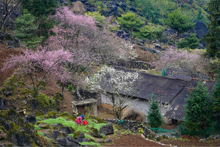 놓칠 수 없는 북부의 매력적인 봄 관광지 중 하나가 하장(Ha Giang)이다. 하장(Ha Giang)은 바위 고원 전체를 분홍색으로 물들이는 복숭아꽃으로 봄을 맞이하고,어딘가에는 매화 가지도 피어나 순백의 색을 뽐낸다. 이번 기회에 하장(Ha Giang)을 방문하는 방문객들은 민속놀이에 참여하고 아늑한 붉은 불 옆에서 몽족과 다오족의 맛있는 전통 요리를 먹을 수 있는 기회를 갖게 됩니다.