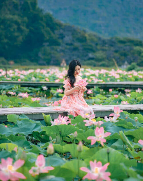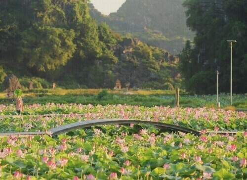 여름에는 Van Long 석호에 연꽃이 피어납니다. 사진: Bui Quang Thuy. Mua Cave 관광 지역은 Ninh Binh시에서 약 7km 떨어진 Hoa Lu 지역의 Ninh Xuan 코뮌에 위치하고 있습니다. 500개의 돌계단을 올라 무아동굴 정상에 오르면 광활한 들판과 석회암 산이 번갈아 가며 펼쳐진다. 항무아 입장료는 1인당 100,000동,주차비는 10,000동입니다. "이른 아침에 등산하면 태양과 피로를 해소하는 데 도움이 될 것입니다. 정상에서는 여전히 일출을 볼 수 있습니다. 방문자는 물과 미니 선풍기를 가져오고 자외선 차단제를 조심스럽게 바르십시오."라고 Lich는 말했습니다. Van Long 연꽃 석호는 최대 1헥타르의 면적을 가진 Hang Mua 관광 지역에 있습니다. 이곳은 흰색에서 분홍색으로 변하는 뾰족한 날개를 가진 일본 연꽃 품종을 재배합니다. 연꽃은 5월 초에 만개하기 시작하여 7월 말에 지고 꽃이 아직 이슬일 때 공기 중에 순수한 향기를 맡게 됩니다.