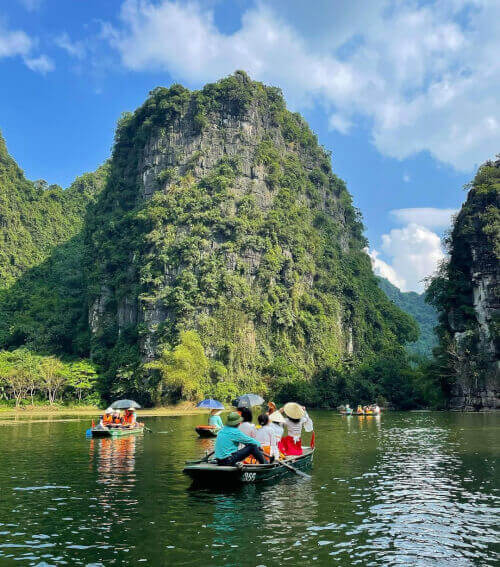 세부일정 1일차 - 일부 장소 방문 첫째 날에는 닌빈에서 가장 유명한 3곳인 짱안,땀꼭 - 빅동,호아루 구시가지를 방문해야 합니다. 아침의 목적지는 짱안입니다. 이 경치 좋은 단지는 석회암 산을 굽이치는 푸른 강과 함께 많은 신비한 자연 동굴을 형성하는 아름다운 자연 경관을 보유하고 있습니다. 여기에서 강을 따라 보트에 앉아 자연의 신선한 공기를 즐기고 Trang An의 경치를 감상할 수 있습니다. 3번 루트,2번 루트에서 보트를 선택하면 Trinh 사원,Tran 사원,Tu Tru 사원을 포함한 3개의 영적 작품을 더 감상할 수 있습니다. 장안 입장권은 1인당 250,000 VND,주차비는 20,000 VND입니다. "Trang An의 풍경은 매우 아름답습니다. 방문자는 여전히 시원할 때 7-8시에 와야합니다. 오전 9시에 도착하여 11:30까지 보트에 앉아 있었기 때문에 꽤 맑았습니다. "라고 Lich는 말했습니다.