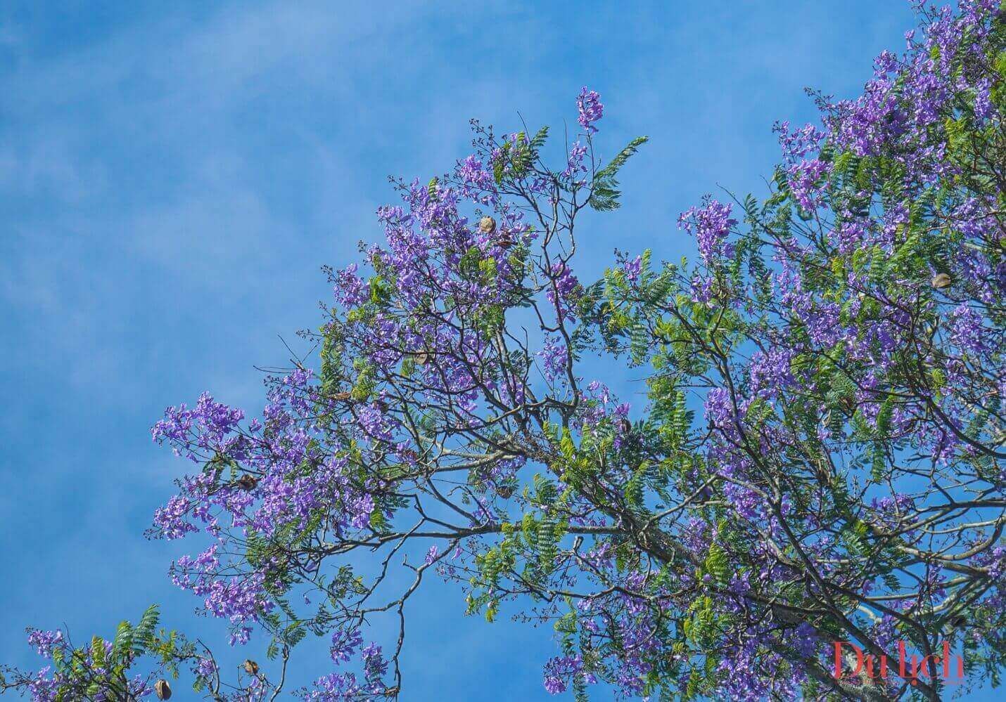 흰색 포인시아나 꽃과 동시에 피는 보라색 포인시아나 꽃도 있습니다. 이 꽃은 남아메리카가 원산지이며 지난 세기 60년대부터 달랏에서 자라기 시작했습니다.