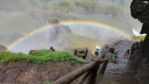 이곳 직원에 따르면 무지개는 매우 자주 나타나며 특히 장마철에는 한 번에 2~3개의 무지개가 뜬다고 한다. 태양이 빛나면 더 잘 보입니다.