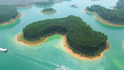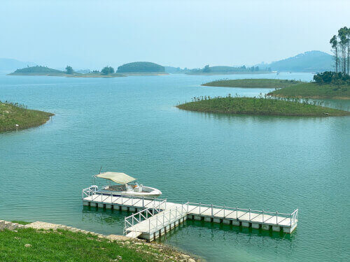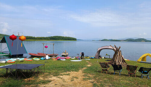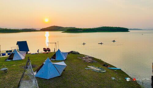 Đặc biệt vào dịp hè,hồ Thác Bà lại trở thành địa điểm “trốn nóng”,trốn khói bụi lý tưởng của các tín đồ ưa xê dịch. Nhiều gia đình trẻ cũng đưa con cái tới đây trải nghiệm,vui chơi,tận hưởng khoảng thời gian thư giãn đúng nghĩa (Ảnh: Vulinh Islands).