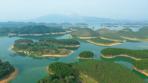 Mặt hồ có diện tích rộng gần 20 nghìn ha,gồm hơn 1.300 đảo lớn nhỏ cùng hệ thống hang động đẹp ẩn sâu trong lòng những dãy núi đá vôi. Nhờ sở hữu cảnh quan thiên nhiên xanh mát tuyệt đẹp,khí hậu trong lành mà nơi đây cũng được du khách ưu ái ví như "vịnh Hạ Long trên núi" (Ảnh: Yến Vi Vu).