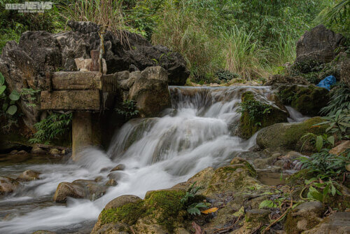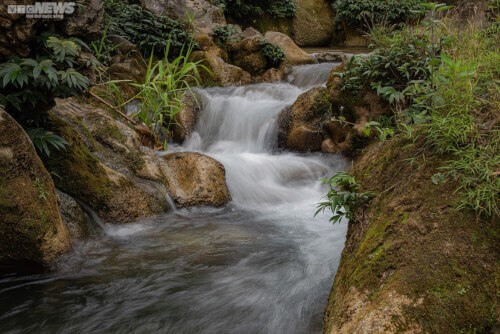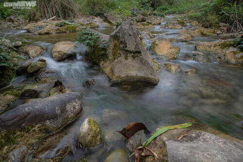 Nước suối từ đầu nguồn chảy về rất sạch sẽ và mát mẻ. Nước ở đây trong đến mức đứng trên bờ vẫn có thể nhìn thấy những tảng đá phủ đầy rêu phong bên dưới.
