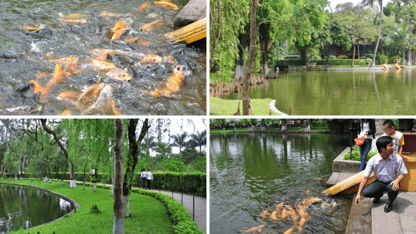 Mặt nước của Ao cá Bác Hồ luôn trong trẻo,phản chiếu màu xanh tươi mát của cây cối xung quanh,tạo nên khung cảnh đầy chất thơ. Từng đàn cá tung tăng dưới làn nước,mang lại cảm giác sống động cho cả khu vực. Các tán cây rộng lớn phủ bóng mát,giúp xua tan cái nóng hầm hập của mùa hè,đồng thời tạo ra bầu không khí trong lành dễ chịu. Mình rất thích ngắm nhìn những chú cá lao lên đớp mồi,vì khoảnh khắc ấy gợi cảm giác hân hoan xen lẫn tò mò. Người ghé thăm có thể dừng chân bên ghế đá,để tạm buông xuống mọi muộn phiền và hít thở hương thơm dịu nhẹ từ thảm thực vật xung quanh.