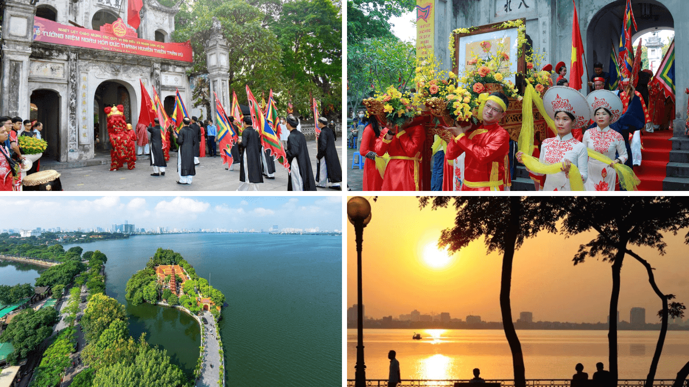 Hồ Hoàn Kiếm nằm ở trung tâm thủ đô, được bao quanh bởi 3 con phố Hàng Khay – Lê Thái Tổ – Đinh Tiên Hoàng. Trước đây hồ còn có một số tên gọi khác như hồ Lục Thủy (hồ nước xanh) hay hồ Thủy Quân (bởi hồ từng là nơi để huấn luyện thủy binh chiến đấu). Đến thế kỉ thứ XV, hồ được đổi tên thành hồ Hoàn Kiếm (trả gươm), gắn liền với sự tích trả gươm báu cho rùa vàng của vua Lê Thái Tổ. Hồ Hoàn Kiếm là nơi tụ hội, điểm hẹn lý tưởng bốn mùa: Rực rỡ trong sắc đào và các lễ hội truyền thống vào mùa xuân; lồng lộng những cơn gió xua tan đi cái nóng oi bức của mùa hè; say đắm với những cành liễu rủ trong màn sương huyền ảo của mùa thu; lộng lẫy trong cơn mưa lá vàng và những giọt mưa phùn lất phất bay của mùa đông. Không chỉ là thắng cảnh đẹp mà du khách không thể bỏ qua trong danh sách những địa điểm du lịch Hà Nội mà đây còn là nơi gắn liền với truyền thống lịch sử tâm linh của thủ đô. Hồ Hoàn Kiếm có hai đảo nổi: Đảo Ngọc nằm ở phía bắc hồ, có cầu Thê Húc uốn cong bắc ngang nối ra đảo. Giữa hồ là đảo Rùa nhỏ hơn, bên trên là ngọn tháp Rùa cổ kính trăm tuổi trầm mặc giữa bốn bề long lanh sóng nước. Vào 3 ngày cuối tuần các đường phố xung quanh hồ Hoàn Kiếm sẽ trở thành phố đi bộ với nhiều hoạt động hấp dẫn như âm nhạc đường phố, các trò chơi dân gian…. thu hút rất đông du khách. Nằm trên đảo Ngọc, đền Ngọc Sơn không chỉ là di tích lịch sử, danh lam thắng cảnh nổi tiếng của Hà Nội mà còn là nơi thờ thần Văn Xương, ngôi sao chủ về văn chương khoa cử và Đức thánh Trần Hưng Đạo. Xung quanh đền là quần thể di tích kiến trúc mang nhiều giá trị lịch sử và ý nghĩa nhân văn gồm cầu Thê Húc, tháp Bút, đài Nghiên, đình Trấn Ba. Sự kết hợp giữa quần thể đền Ngọc Sơn và hồ Hoàn Kiếm đã tạo nên một tổng thể kiến trúc cổ kính hài hòa, đăng đối giữa con người và thiên nhiên. Ở cạnh Hồ Gươm là các phố cổ như Hàng Ngang, Hàng Đào, Hàng Đường,… nơi du khách có thể tham quan, khám phá cuộc sống, văn hóa và con người cũng như nét ẩm thực độc đáo của Hà Nội. Tượng đài Lý Thái Tổ được đặt tại vườn hoa Chí Linh trên đường Đinh Tiên Hoàng. Đây là công trình kiến trúc văn hóa tiêu biểu ở hồ Hoàn Kiếm nhằm tôn vinh vị vua đã có công khai sáng kinh thành Thăng Long. Nằm bên bờ hồ, tháp Hòa Phong là di tích cổ còn sót lại của chùa Báo Ân sau khi đã bị người Pháp phá hủy để lấy đất xây bưu điện. Xung quanh hồ có hằng hà sa số món đồ mà các bạn có thể mua về để làm quà cho bạn bè cũng như người thân chẳng hạn như đồ thủ công, những món quà nhỏ xinh xắn, quần áo, giày dép, các món đặc sản ở Hà Nội như bánh cốm, ô mai… Phố Hàng Ngang, Hàng Đào, Hàng Bạc, Hàng Đường, chợ Đồng Xuân… là một số địa chỉ uy tín và chất lượng để các bạn thỏa sức mua sắm. Theo kinh nghiệm của nhiều người thì các bạn nên đi mua sắm vào buổi chiều vì các cửa hàng ở đây rất kiêng việc khách hàng đến vào buổi sáng để hỏi đồ nhưng lại không mua gì.