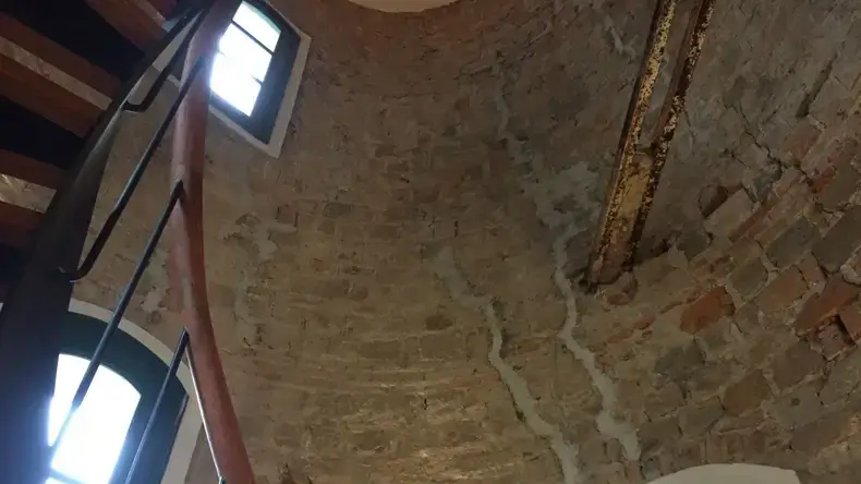 Cầu thang dẫn đến tầng 2 cũng được thiết kế lại khi được làm bằng các chất liệu chính là thép và gỗ do hệ thống cầu thang cũ đã bị hư hỏng. Một số chỗ của cầu thang trong quá trình sửa chữa đã không trát vữa nhằm thể hiện sự độc đáo và thể hiện nét kiến trúc Pháp đặc trưng trong giai đoạn cuối thế kỉ XIX,đầu thế kỉ XX