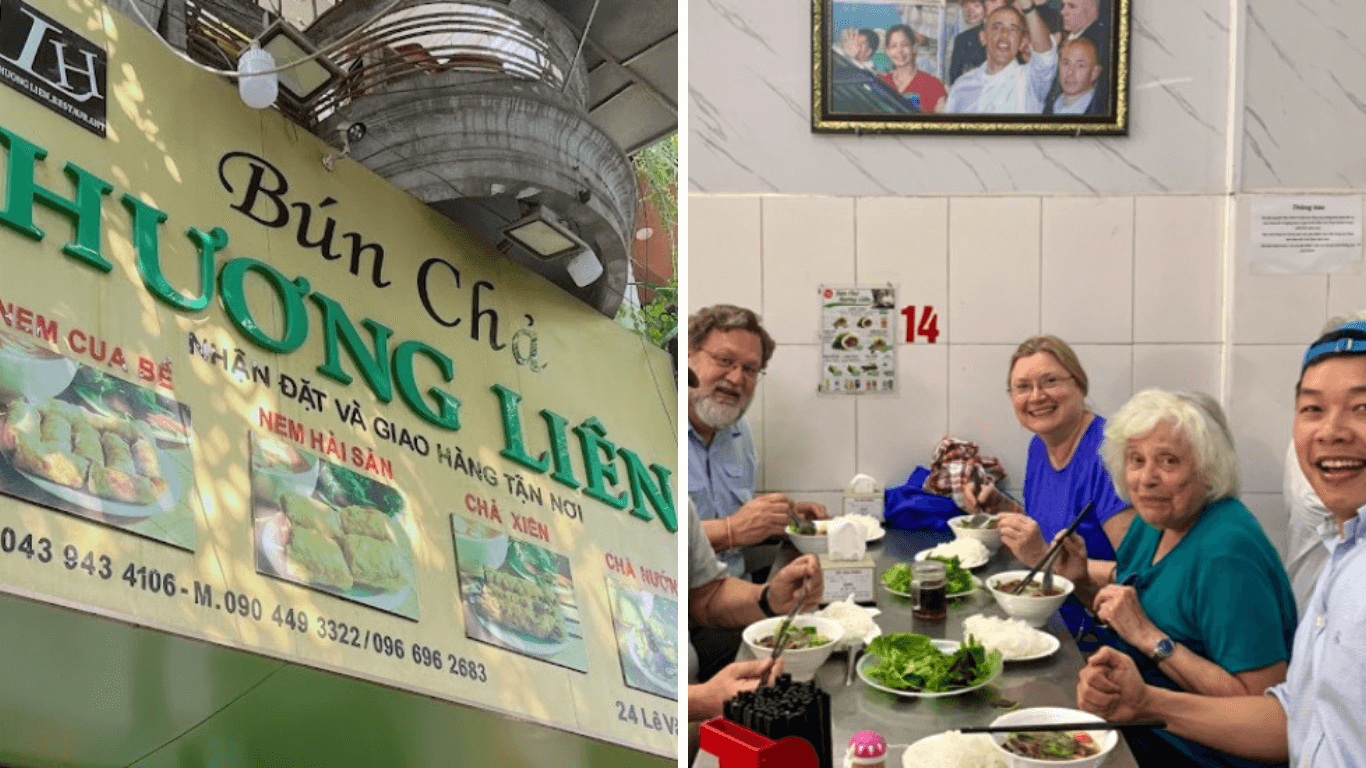 Giữa lòng Hà Nội,Bún chả Hương Liên hay còn được nhiều người gọi với cái tên gắn liền với vị tổng thống Mỹ đã từng ghé thăm nơi đây là bún chả Obama,là một điểm đến thú vị cho những ai yêu thích ẩm thực truyền thống. Quán có không gian ấm cúng,bài trí đơn giản nhưng tinh tế,giúp bạn cảm nhận được hơi thở của phố cổ. Từng miếng thịt nướng thơm lừng cùng sợi bún mềm mịn được chế biến cẩn thận để mang lại hương vị đặc trưng. Không gian quán mang đến cảm giác thân quen,gần gũi như trở về nhà. Mỗi góc nhỏ tại đây đều chứa đựng những chi tiết độc đáo chờ bạn khám phá.