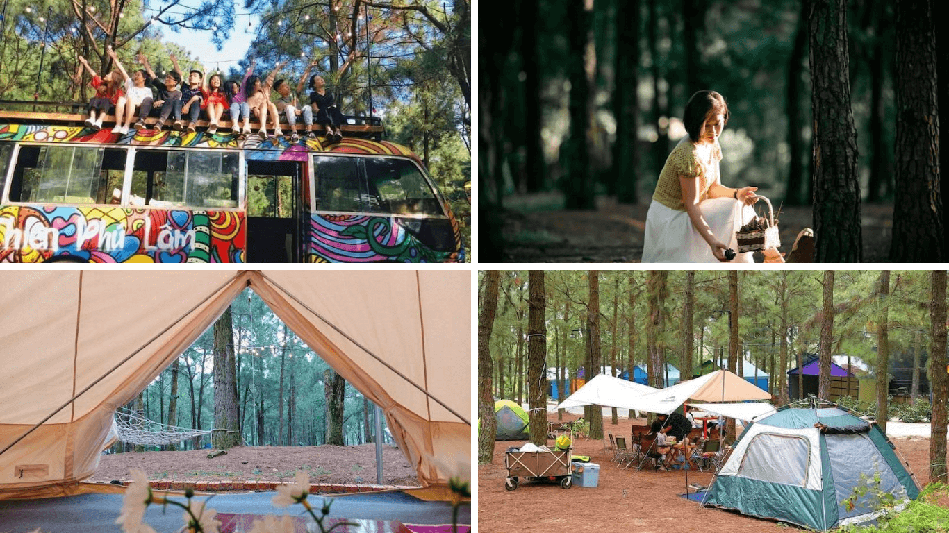 Cắm trại giữa rừng thông là hoạt động được nhiều bạn trẻ quan tâm khi đến Thiên Phú Lâm. Không gian thoáng đãng giúp bạn nghỉ ngơi thoải mái,hít hà không khí mát mẻ và hòa mình vào thiên nhiên. Bạn có thể thuê lều ngay tại khu du lịch hoặc mang theo đồ đạc cá nhân,sau đó chọn một bãi trống ưng ý để “dựng lều” cùng bạn bè. Buổi tối,mọi người hay quây quần bên bếp lửa,nướng đồ ăn và chia sẻ những câu chuyện vui vẻ dưới bầu trời đầy sao.