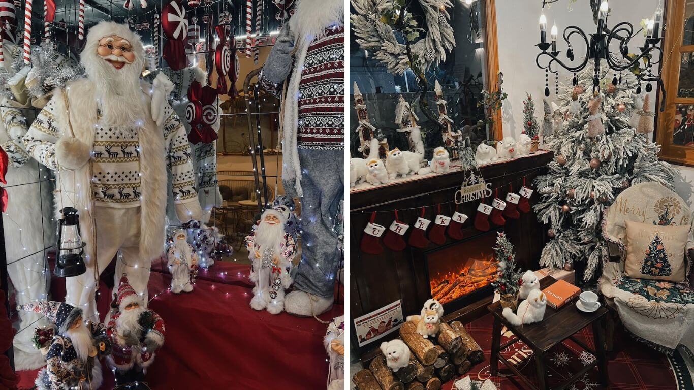 Cheka Cafe mang đến một không gian thiết kế tinh tế,kết hợp giữa phong cách hiện đại và sự ấm áp. Khi bước vào quán,du khách sẽ ngay lập tức bị cuốn hút bởi ánh đèn vàng nhẹ nhàng và những chi tiết trang trí mùa đông. Cây thông Noel lớn với hàng nghìn bóng đèn nhỏ tạo nên một khung cảnh lung linh,mang lại cảm giác như đang bước vào một câu chuyện cổ tích. Các món đồ trang trí Giáng Sinh được sắp đặt tỉ mỉ,góp phần tạo nên không gian vừa sang trọng vừa gần gũi. Mỗi góc nhỏ trong quán đều được chăm chút,đảm bảo rằng mọi khách hàng đều cảm thấy thoải mái và thư thái.