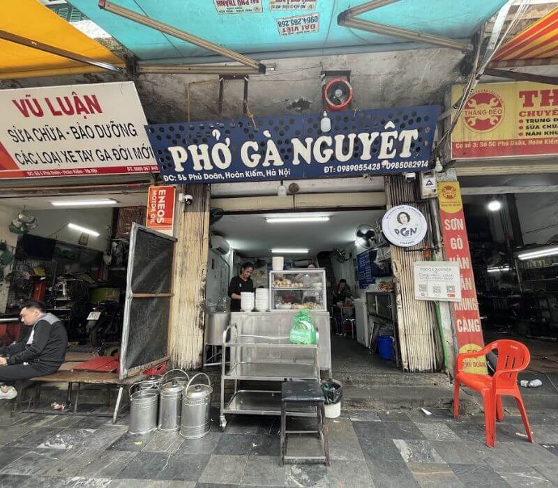 Phở gà Nguyệt nằm tại số 5 Phủ Doãn,Hoàn Kiếm,Hà Nội là một địa điểm không thể bỏ qua đối với những ai yêu thích ẩm thực Hà thành. Quán phở này đã tồn tại nhiều năm và trở thành điểm đến quen thuộc của cả người dân địa phương lẫn du khách. Không gian quán nhỏ nhắn,đơn giản nhưng lại ấm cúng và mang đậm nét đặc trưng của Hà Nội xưa. Khi đến đây,bạn sẽ cảm nhận được sự gần gũi,thân thiện của chủ quán và nhân viên,tạo nên một không khí thoải mái,dễ chịu.