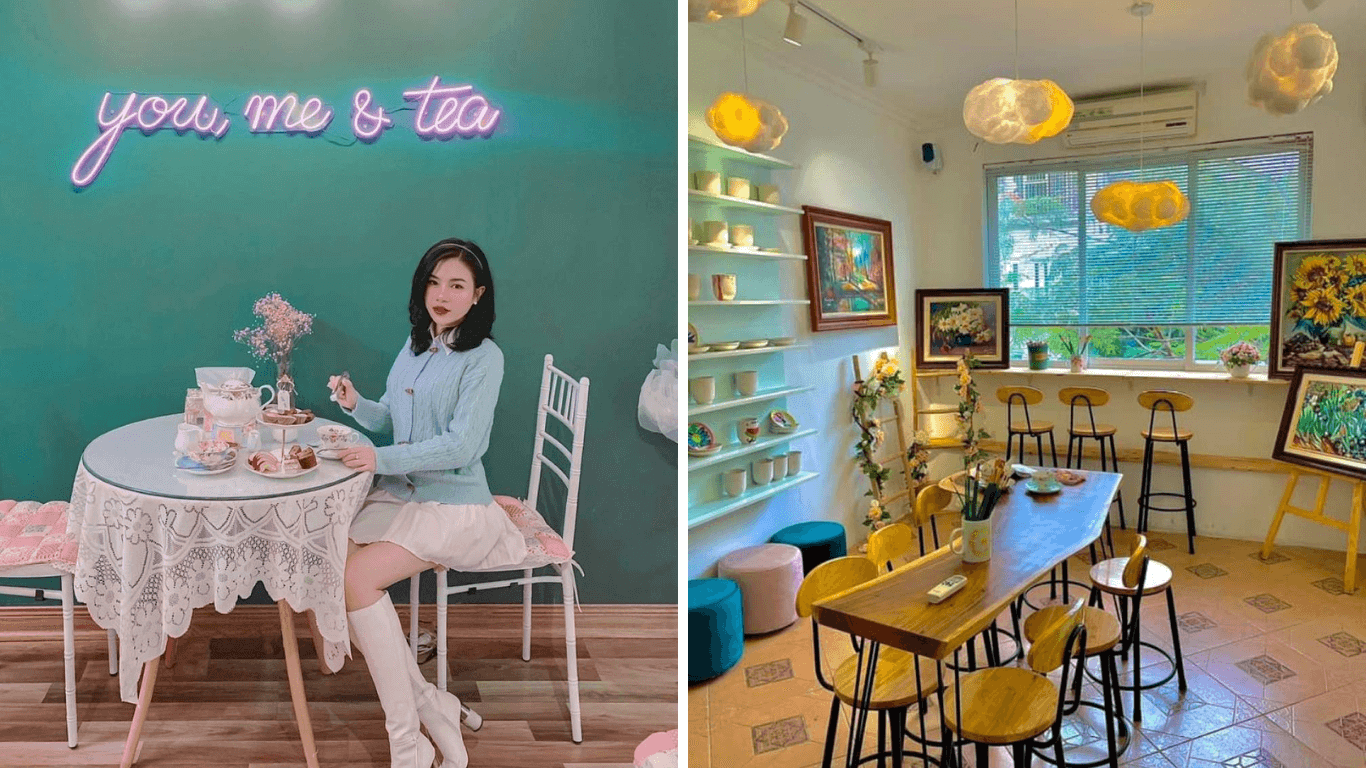 Five O'clock Tea là một trong những quán cà phê có không gian ấn tượng nhất ở Hà Nội,đặc biệt phù hợp với những ai yêu thích chụp ảnh. Quán được thiết kế theo phong cách châu Âu cổ điển với sự kết hợp của tông màu pastel nhẹ nhàng và nội thất sang trọng. Ngay từ khi bước vào,bạn sẽ bị thu hút bởi những bức tường gạch thô,những chiếc ghế vintage và cách bày trí tỉ mỉ từng chi tiết nhỏ. Không gian của quán mang lại cảm giác nhẹ nhàng,tinh tế,giúp bạn có thể thỏa sức sáng tạo những bức ảnh "nàng thơ" đầy lãng mạn. Tầng 3 của quán được trang trí với những chậu hoa hồng,tạo nên một không gian thơ mộng,thích hợp cho những bức ảnh mang phong cách cổ điển.