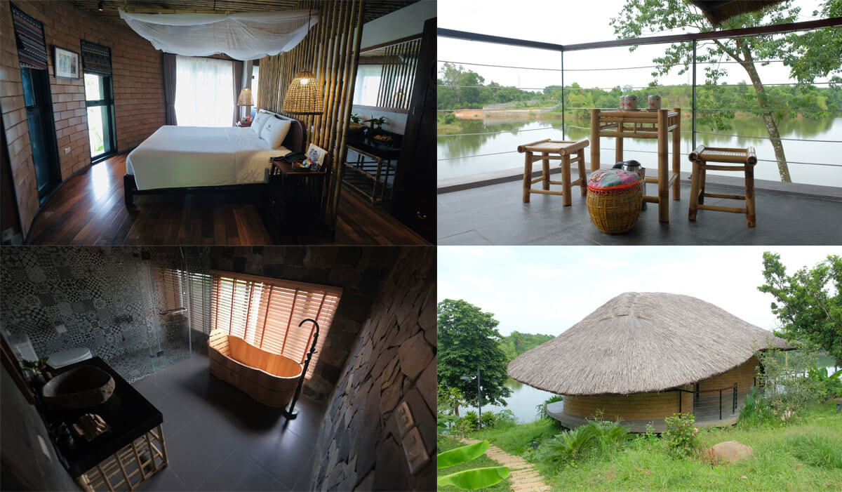 Khu nghỉ dưỡng có lối thiết kế tạo sự gần gũi với thiên nhiên,khi sử dụng nhiều vật liệu thân thiện như gỗ,tre,đá. Các căn phòng được trang trí tối giản,đậm chất truyền thống và trang bị tiện nghi cơ bản để du khách thấy thoải mái. Cảm giác tách biệt khỏi nhịp sống ồn ã giúp mọi người dễ dàng lấy lại cân bằng sau những ngày làm việc mệt mỏi. Mình và bạn có thể coi đây là chốn lui về,vừa để nghỉ ngơi vừa để cảm nhận sự trong lành của vùng ngoại ô Hà Nội.