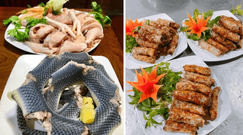 Ngoài những món ăn chế biến từ thịt rắn,du khách cũng có thể thưởng thức các món ăn được chế biến từ những phần khác của con rắn như da và xương. Các món ăn này không chỉ bổ dưỡng mà còn có tác dụng tốt cho sức khỏe,đặc biệt là trong việc bồi bổ cơ thể. Người dân nơi đây sử dụng những nguyên liệu tự nhiên,chế biến tỉ mỉ để giữ được hương vị đặc trưng của từng món ăn. Mỗi món ăn là một sự kết hợp hoàn hảo giữa nguyên liệu tươi ngon và phương pháp chế biến truyền thống.