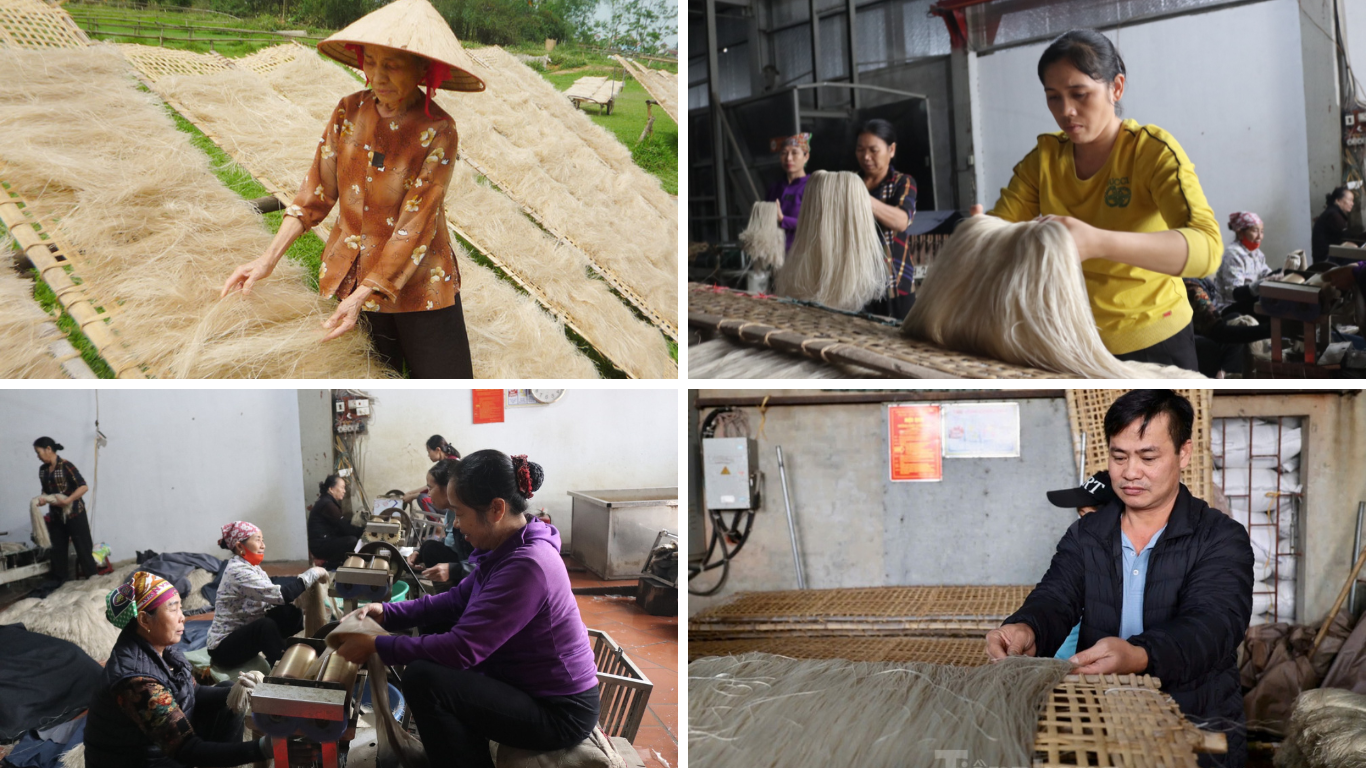 Sau khi bánh được hấp chín,người dân sẽ đưa ra sân phơi dưới nắng nhẹ để giữ được độ dẻo. Bánh phơi xong sẽ được cắt thành sợi miến bằng dao hoặc máy thủ công. Các sợi miến được phơi tiếp trên giàn gỗ cho khô đều trước khi đóng gói. Chính quy trình cẩn trọng ấy tạo nên sợi miến dai,giòn,giữ được hương vị tự nhiên.