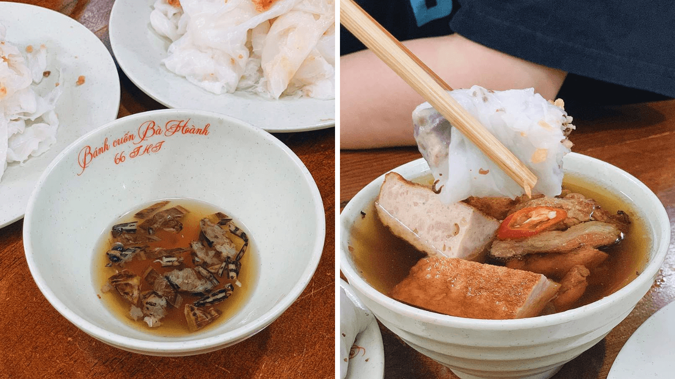 Để món bánh cuốn thêm phần đậm đà,bạn có thể gọi thêm một bát nước chấm đặc biệt để kèm theo. Nước chấm ở Bà Hoành có sự kết hợp giữa vị mặn của nước mắm,vị ngọt nhẹ của đường,và sự cay nồng của tỏi,ớt tươi. Món bánh cuốn sẽ không thể trọn vẹn nếu thiếu đi phần nước chấm này. Bạn cũng đừng quên gọi thêm chả lụa hoặc nem rán,vì chúng là những món ăn kèm hoàn hảo khi ăn với bánh cuốn. Chả lụa tại đây có độ dai vừa phải,mềm ngon,khi ăn kèm sẽ giúp bữa ăn của bạn thêm phần phong phú.