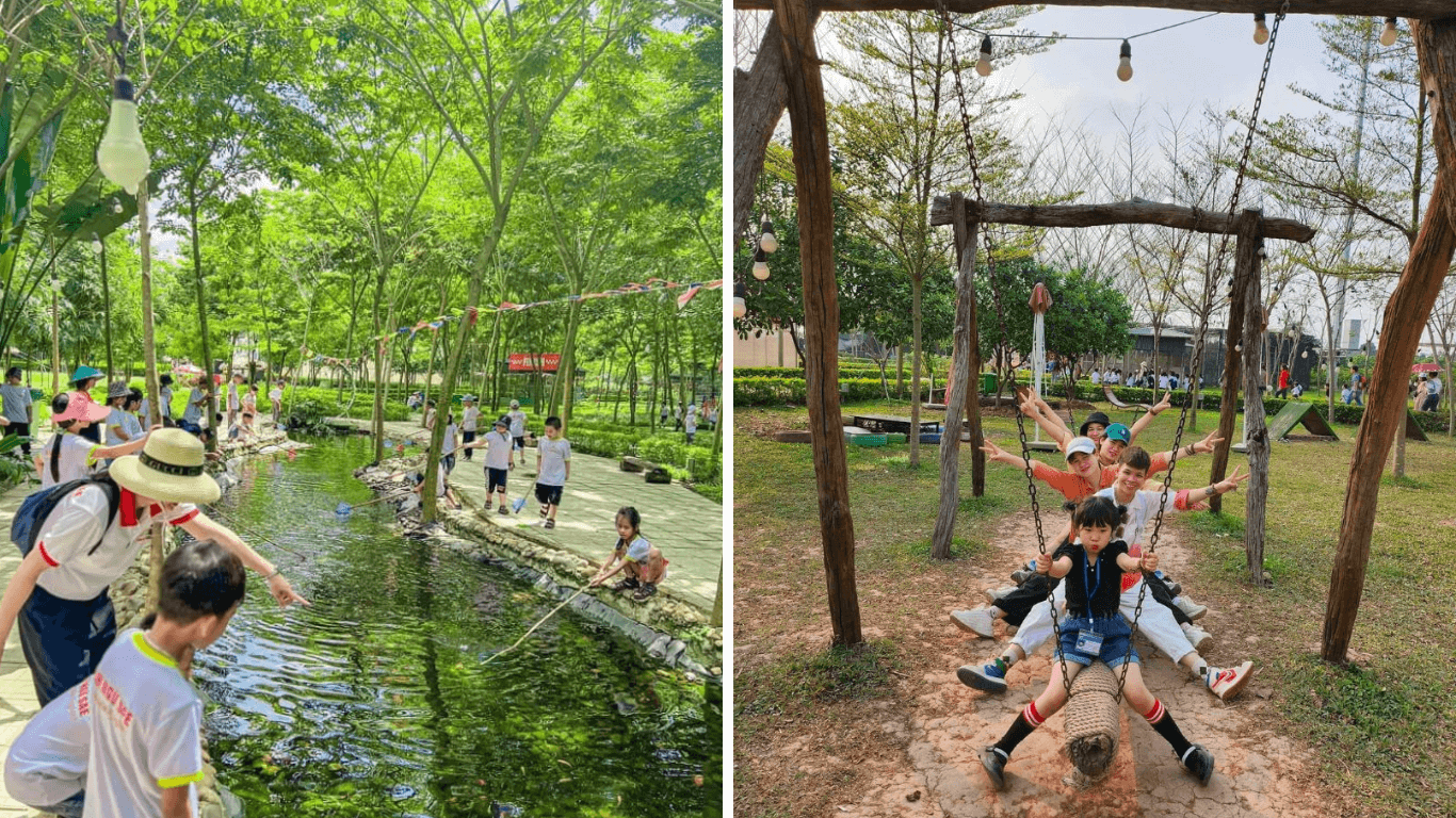 Phù Đổng Green Park có khu vui chơi rộng rãi với nhiều trò chơi dành cho trẻ em và người lớn. Bạn có thể tham gia các trò như đạp xe,chèo thuyền trên hồ,hoặc thử sức với các trò thể thao ngoài trời như bóng đá và bóng chuyền. Khu vực này được thiết kế an toàn,thích hợp cho mọi đối tượng,từ trẻ nhỏ đến người lớn. Đặc biệt,với không gian xanh mát và nhiều hoạt động thú vị,đây là nơi lý tưởng để các gia đình vui chơi và thư giãn. Du khách cũng có thể tận dụng các dịch vụ cho thuê dụng cụ thể thao để tham gia các trò chơi này.