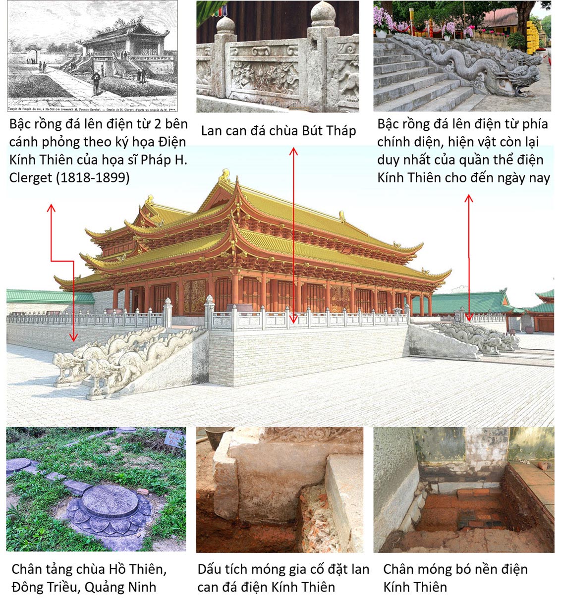 Ngoài phần rồng đá,khu nền và các dấu tích gạch xây dựng cũng mang lại nhiều thông tin quý giá cho việc nghiên cứu lịch sử. Các nhà khảo cổ đã tìm thấy nhiều hiện vật và cấu kiện gỗ,có thể thuộc về phần mái và cột của điện xưa. Mỗi chi tiết,dù nhỏ nhất,đều gợi lại hình ảnh của một cung điện lộng lẫy ngày trước. Khi quan sát kỹ,bạn sẽ thấy từng dấu tích đều mang câu chuyện riêng của một triều đại đã qua.