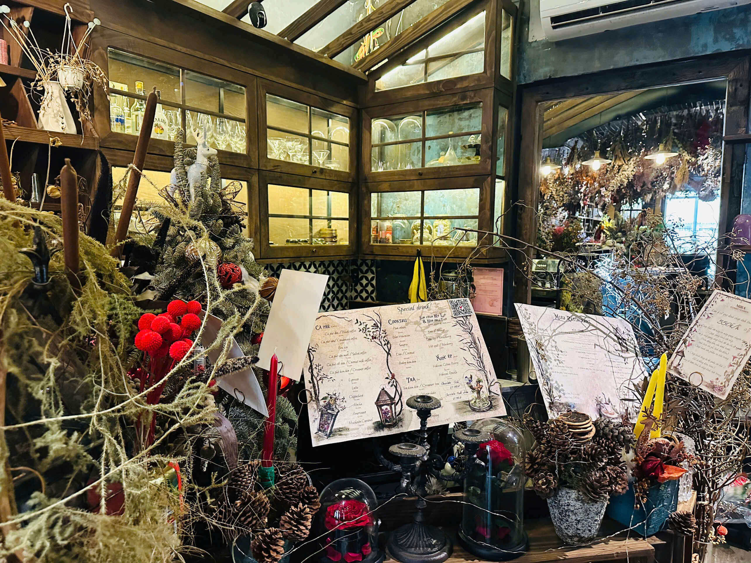 Không gian quán bao gồm hai tầng được lắp điều hòa và sử dụng quanh năm dù là trong mùa đông. Bởi vì quán trang trí số lượng hoa tươi lớn nên cần đảm bảo nhiệt độ phòng đạt tiêu chuẩn để giúp hoa bền đẹp hơn. Bên cạnh đó quán còn có cả không gian ngoài trời cho những ai thích ngắm nhìn đường phố và hít thở không khí của phố cổ Hà Nội. Có thể nói diện tích quán không quá lớn nhưng lại vô cùng nổi bật khiến team mê sống ảo thỏa sức tạo dáng và thưởng thức các món ăn ngon.