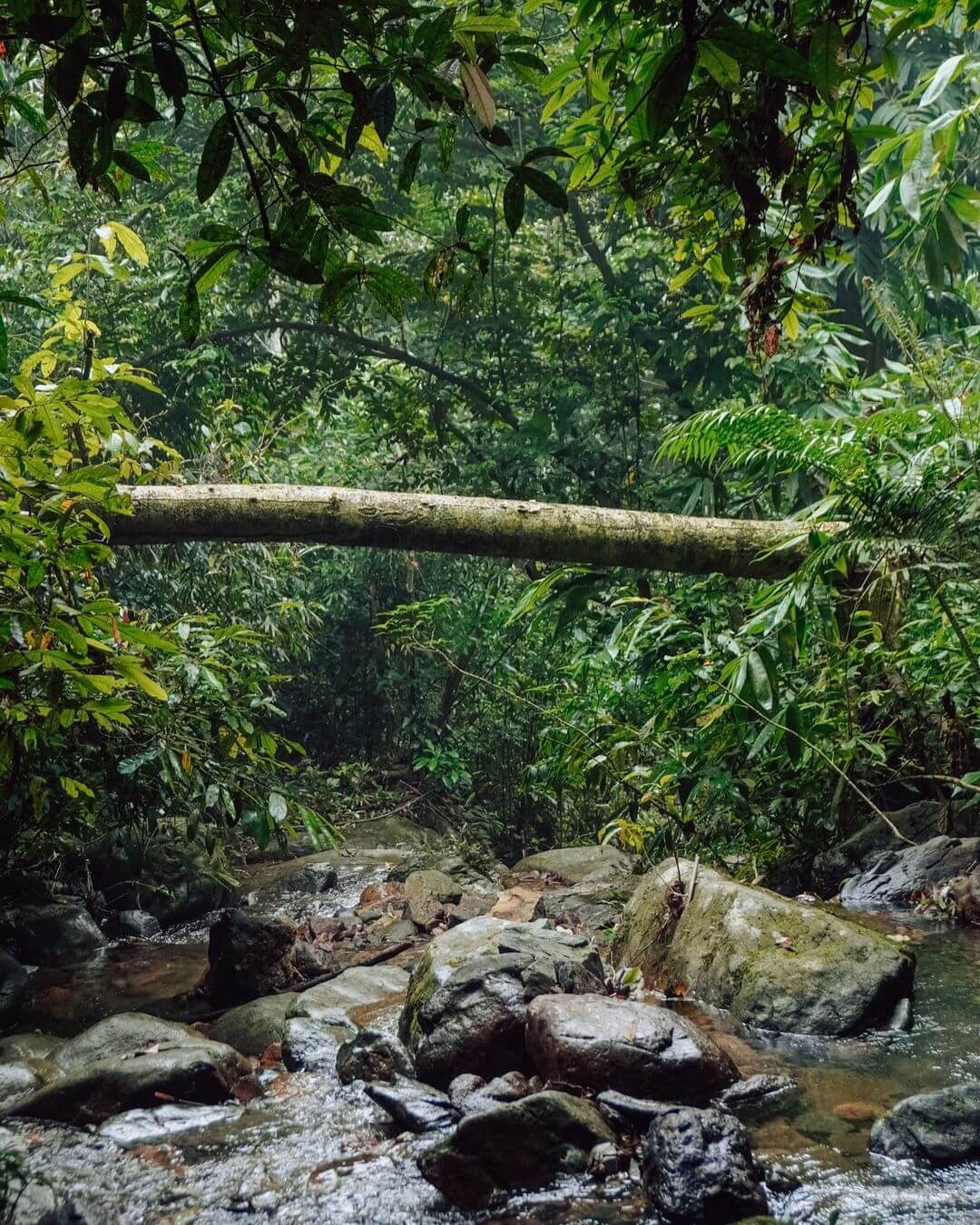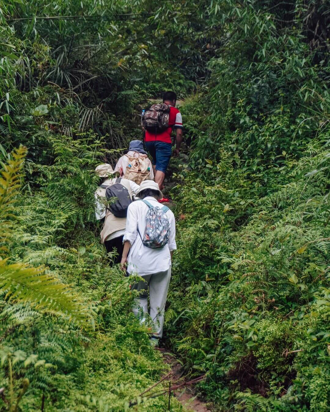 Hành trình trekking bắt đầu từ những con đường mòn rợp bóng cây,nơi mà ánh nắng len lỏi qua tán lá,tạo ra những dải sáng lung linh trên mặt đất. Đôi khi mình phải leo qua những tảng đá lớn hay băng qua những dòng suối nhỏ,cảm giác như đang khám phá một khu rừng bí ẩn. Đường đi có lúc khá dễ dàng với những đoạn đường phẳng lặng,nhưng cũng có những đoạn đầy thử thách với những dốc đứng và đá trơn trượt. Mình phải thật cẩn thận từng bước đi,dùng cả tay để bám vào cây cối xung quanh để giữ thăng bằng.