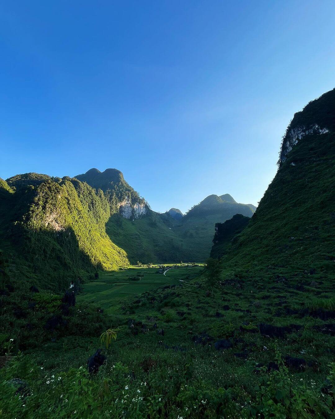 Mình có dịp đến thăm Đường Thượng,một vùng núi xanh mướt thuộc tỉnh Hà Giang. Khung cảnh nơi đây khiến mình không thể không mê mẩn bởi vẻ đẹp hoang sơ,bình yên. Những dãy núi trùng điệp như ôm trọn cả bầu trời,tạo nên một bức tranh thiên nhiên tuyệt đẹp và hùng vĩ.